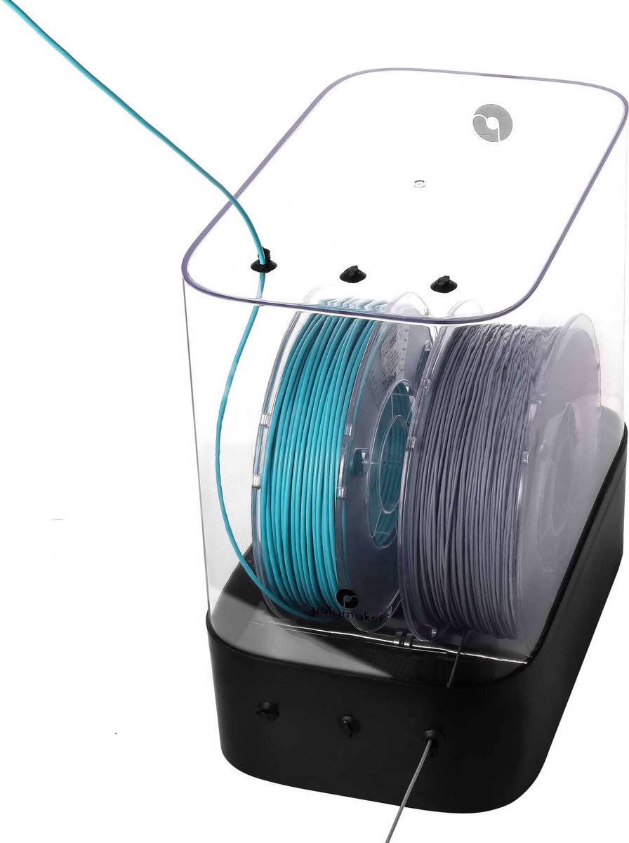 PolyBox™ is een opbergbox (dryer) die is ontworpen om de optimale omgeving te bieden voor 3D-printfilamenten. De PolyBox™ is compatibel met alle 3D-printers en kan twee 1kg-spoelen of één 3kg-spoel bevatten. Met 8 kogellagers en een thermo-hygrometer kunt u uw filamenten tegelijkertijd printen, bewaken en opslaan.