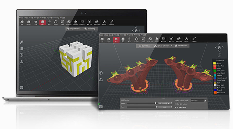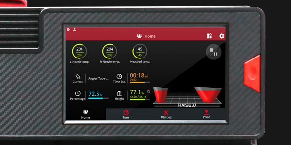 Deze professionele 3D-printer heeft ook een 7-inch touchscreen, waardoor gebruikers rechtstreeks met de printer kunnen communiceren. Het touchscreen biedt ook assistentie op het scherm en visuele modelselecties om de bediening en bewaking van de 3D-printer en het 3D-printproces te vereenvoudigen. Ten slotte is de E2CF, net als alle Raise3D 3D-printers, compatibel met ideaMaker, een 3D-slicing-programma, en RaiseCloud, een cloud gebaseerd platform voor 3D-printbeheer.